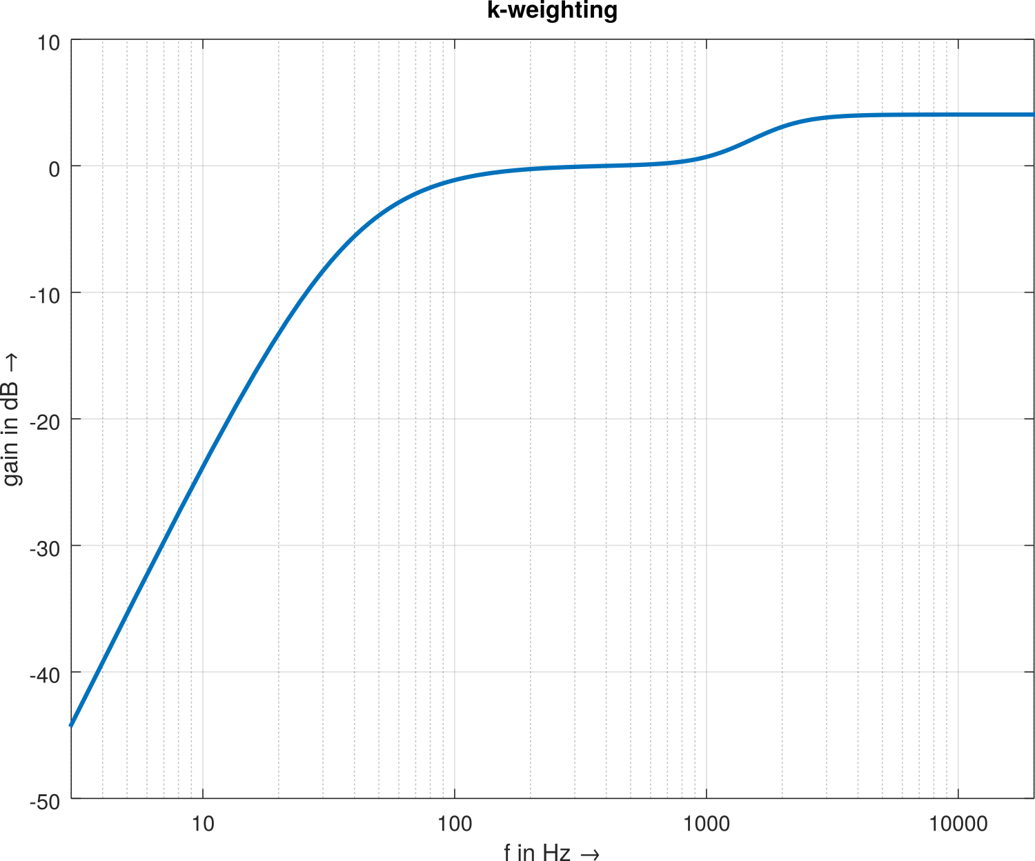 EBU R 128 loudness is measured in LUFS (Loudness Units Full Scale, or equivalently LKFS, Loudness k-weighted Full Scale) for absolute values or LU (Loudness Units) for relative values whereat 0 LUFS are equivalent to full scale. The loudness is defined as the k-weighted (see Filter Curve EQ or Graphic EQ) sum of the squared values of all channels in which the k-weighting approximates the characteristics of the human ear. Thus, LU are somewhat related to the mean square without root. Usually, the perceived loudness is calculated in blocks of 400 milliseconds every 100 milliseconds (so called momentary loudness).